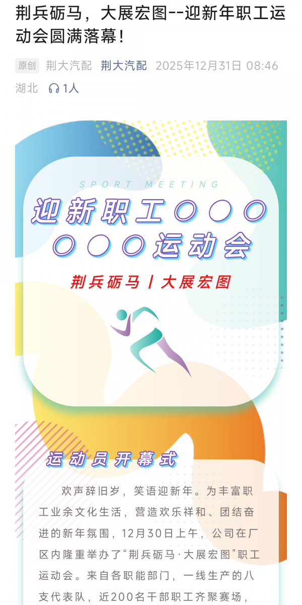 荆兵砺马,大展宏图一-----迎新年职工运 动会圆满落幕!